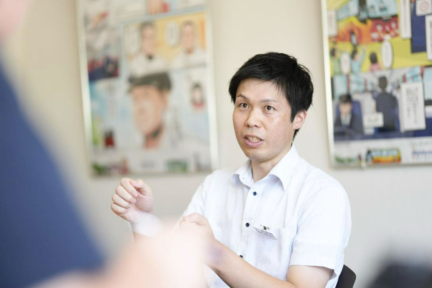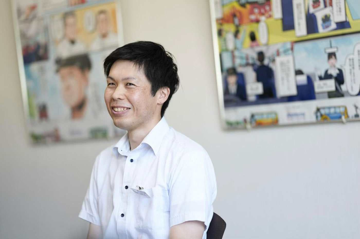 今回話を聞いたのは、亀の井バスで路線バスの運行を担当する乗合課の中磨勇太さん。「こども運転席」の発想のきっかけから設置までの裏側を伺った。