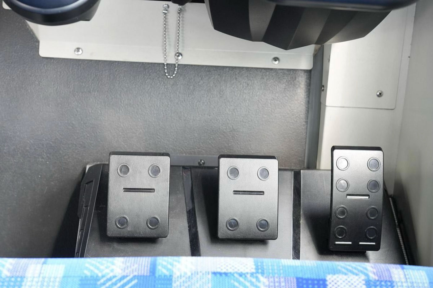 「こども運転席」は、運転席の真後ろに設置されている。ハンドルやシフトレバー、アクセル・ブレーキペダル、扉の開閉スイッチなど、実際の運転操作を模した装置が揃う。