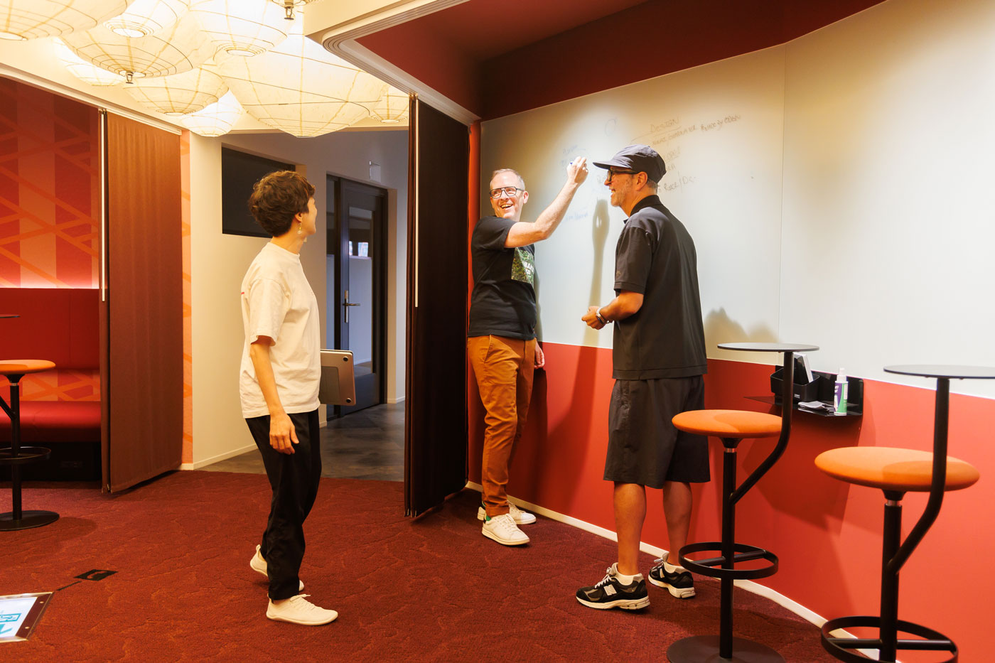 会議の内容によって選んでいます。しっかり議論したい時は四角いテーブルの部屋を、ブレストやチームミーティングの時は丸いテーブルの部屋を使います。窓の有無や開放感も大事ですね。秘匿性の高い打ち合わせでは外から見えにくい角部屋を選び、そうでない時は明るく開放的な部屋で。用途に合わせて柔軟に選べるのですごく便利です。