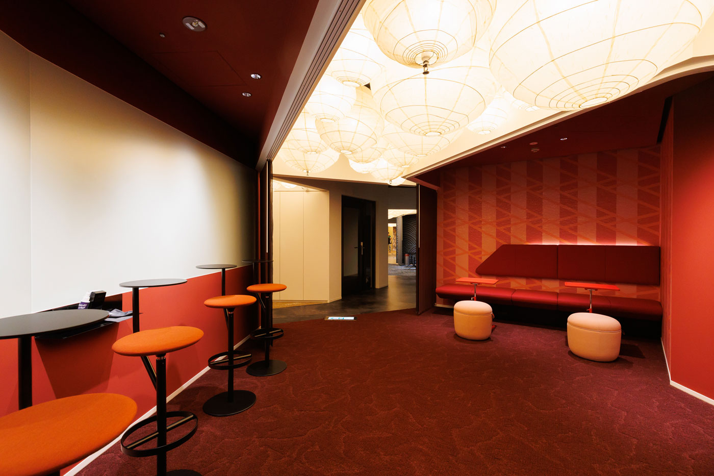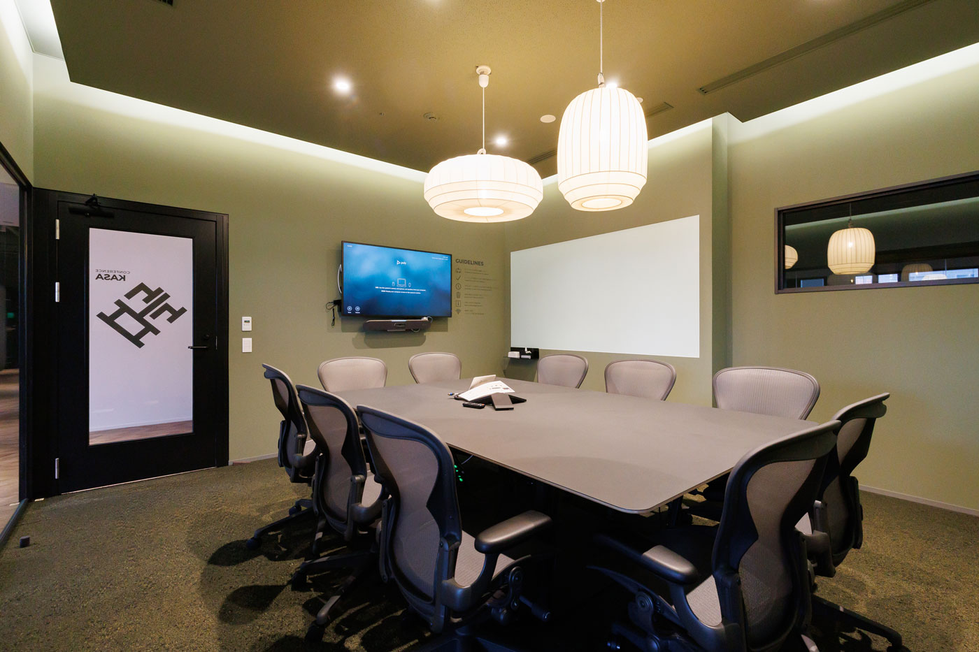 会議室は16室あり、館内に点在しています。各部屋の名前は「雲」の名称がモチーフです。「YUKI(雪)」や「UROKO(鱗)」などの漢字が扉にデザインされているんですよ。