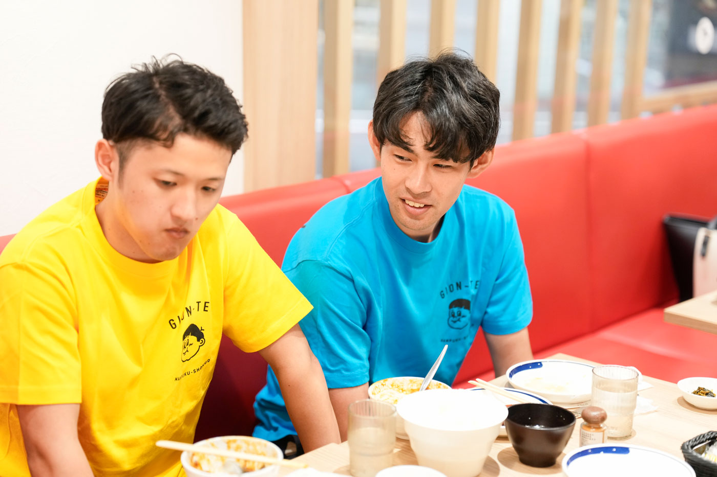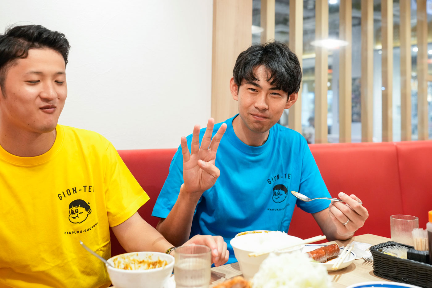 ぼくも元野球部で、高校生の時は「食トレ」でごはんを1食に3、4合食べていたこともありました。金さんと金丸さんより少し年齢は上ですが、負けずに食べたいと思います。