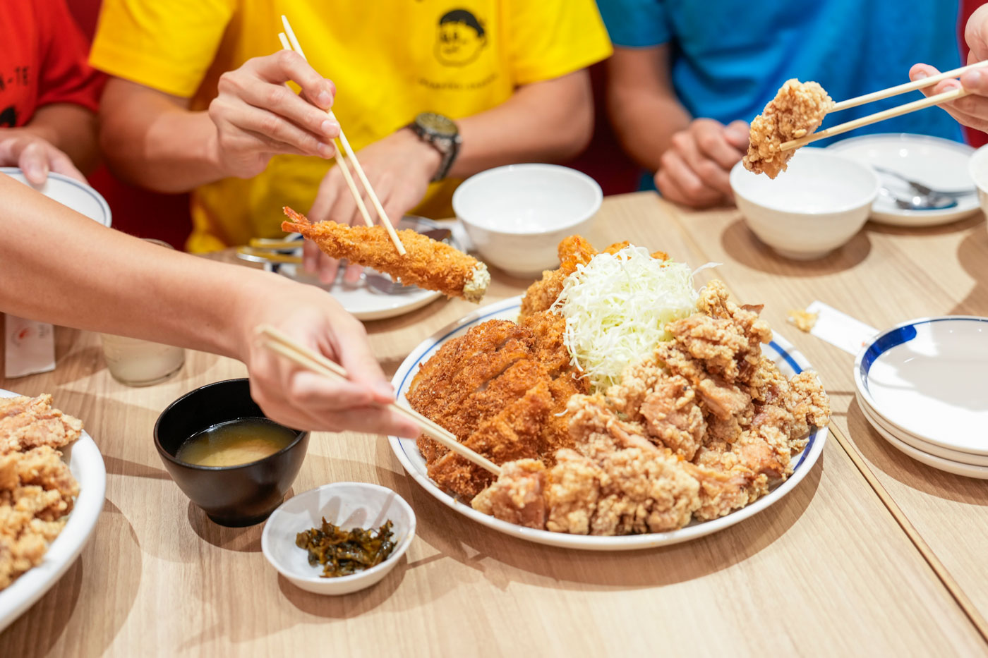勢いよく揚げ物を食べ進め、すべり出しはかなり順調な様子。