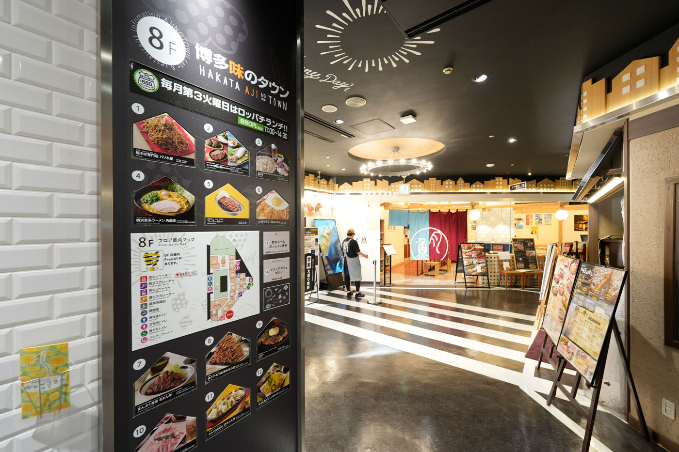 エレベーターで8階にある飲食街「博多味のタウン」を目指し、「まんぷく食堂ぎおん亭」にたどり着いた。