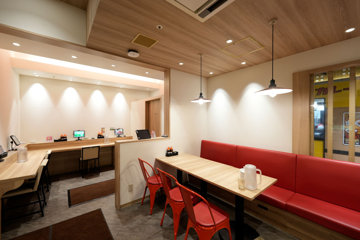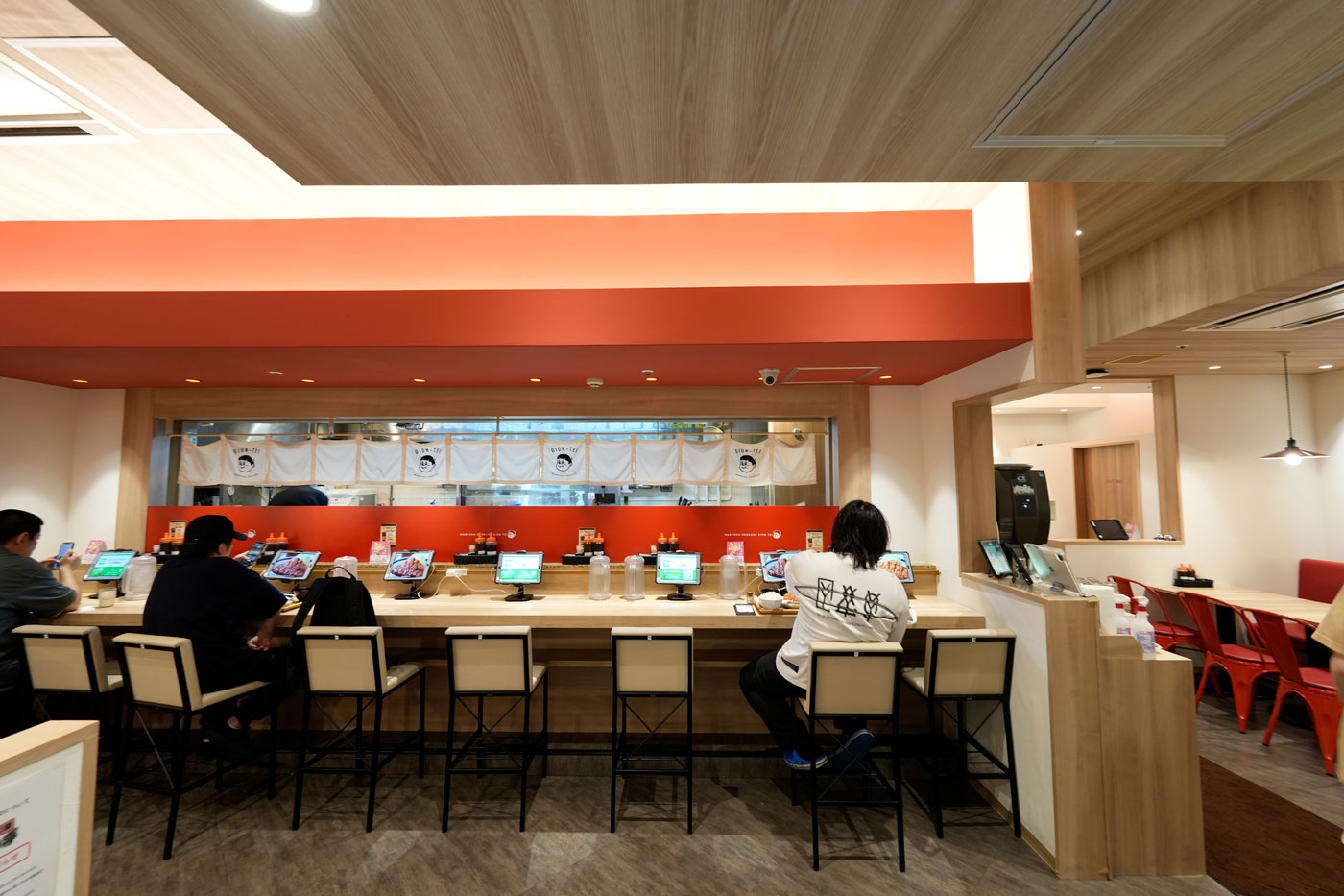 客席はカウンター席とテーブル席を用意。注文にも会計にも端末を使うので、「ガッツリ食べるのは恥ずかしい」という人でも気兼ねなくオーダーできる。