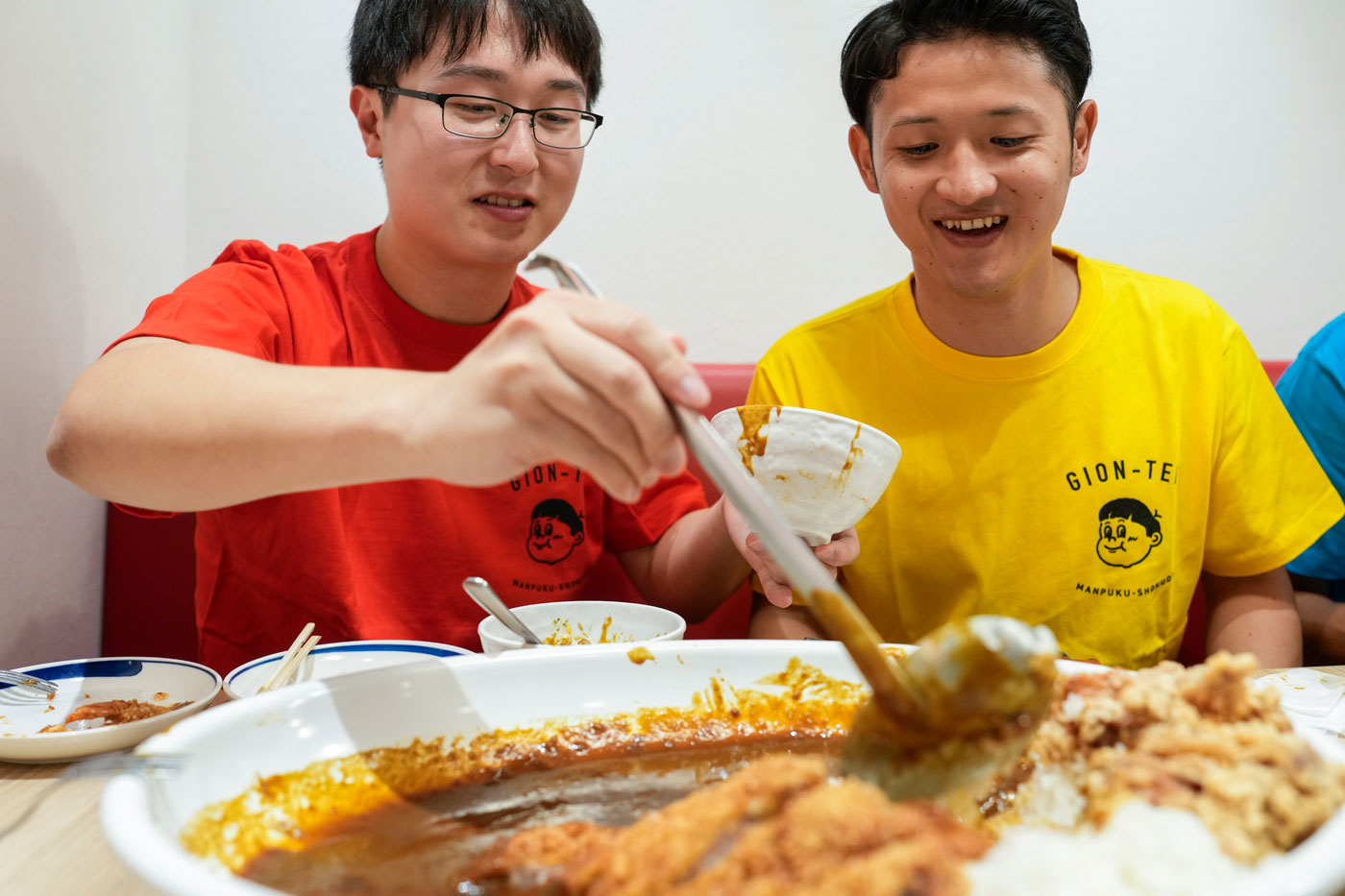 大食いでなくても、好きなボリュームで、おいしい定食が味わえる「まんぷく食堂ぎおん亭」。食べ盛りの若者や大盛り好きなら、ぜひ「ばりスゴ定食」や「ばりスゴカレー」のすごさを体験してみてください!