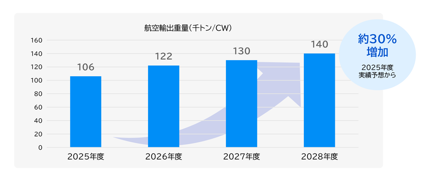 専門性の高度化にも注力する。AOG(航空機部品の緊急輸送)貨物への対応として24時間365日のサービス体制構築や、半導体専業課の拡充、自動車専業課の設置によって、分野別のサポート体制を強化していく。