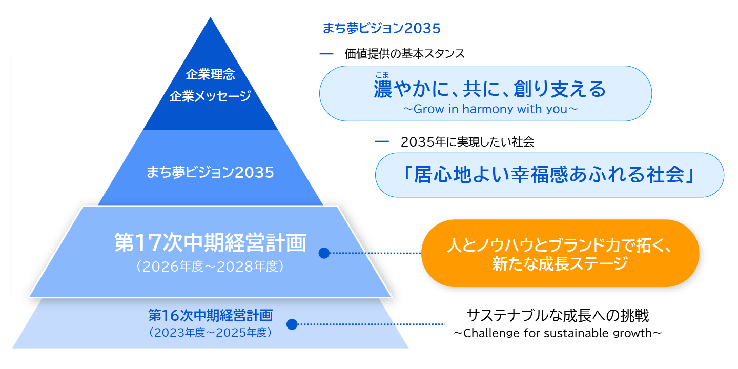 こうした第16次中期経営計画期間の成果と課題を踏まえ、今回の新たな中期経営計画は、「まちづくり企業」としての進化をより明確に打ち出している。