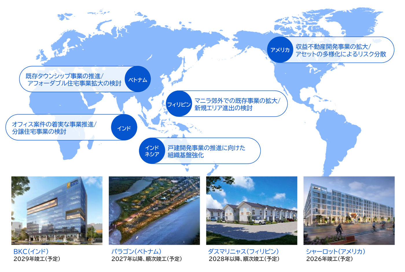 国内では、安定的かつ効率的な利益確保に向けて住宅開発を推進。関西では「サンリヤン堺」、首都圏では「サンリヤン横浜二俣川」といった分譲住宅を展開するほか、熊本市において物流施設開発を進め、地域分散による収益の安定化と新たな市場の取り込みを図る。